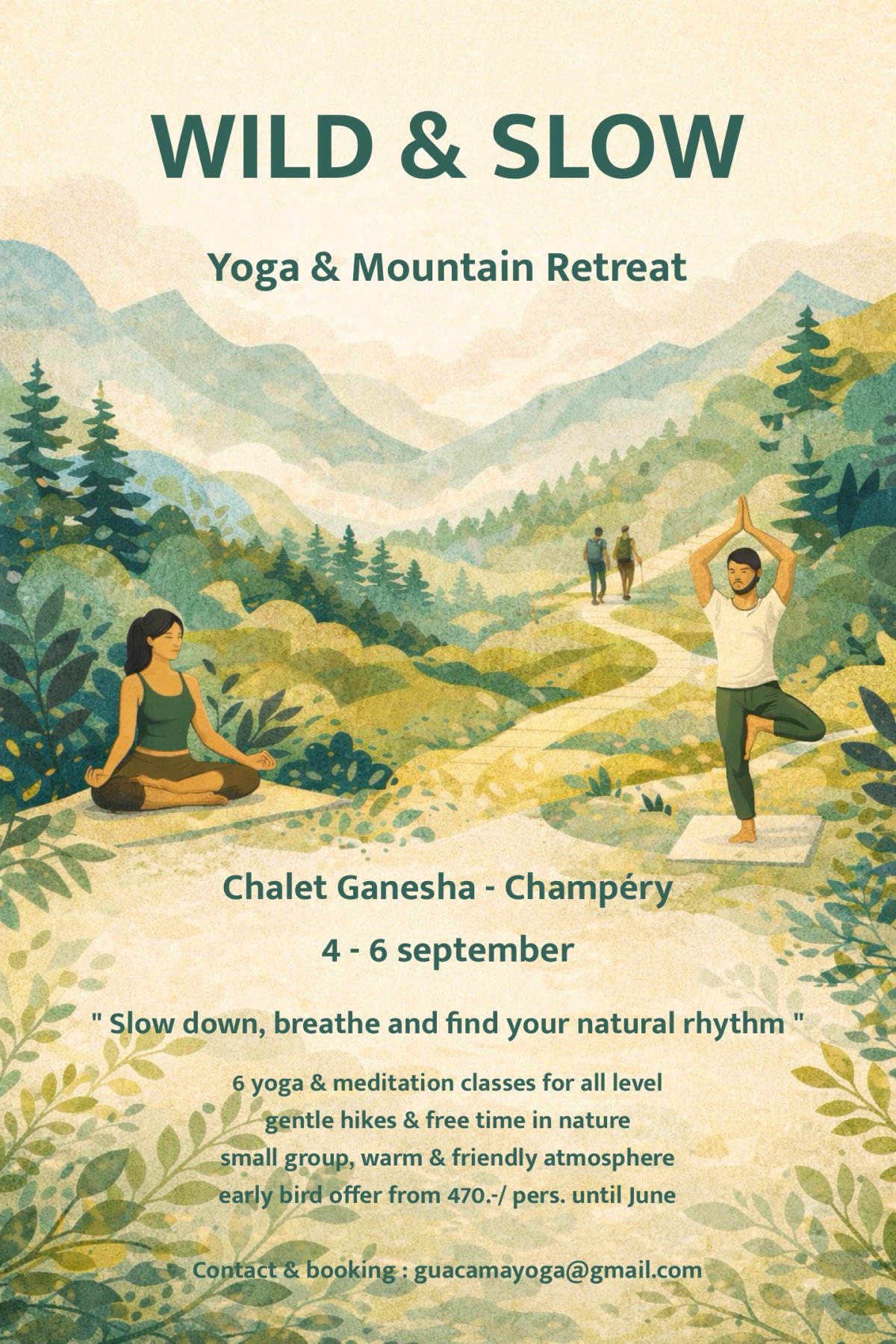 Du 4 au 6 septembre, nous nous retrouvons au Chalet Ganesha à Champéry, dans un cadre naturel et ressourçant, pour ralentir, respirer et bouger en douceur.